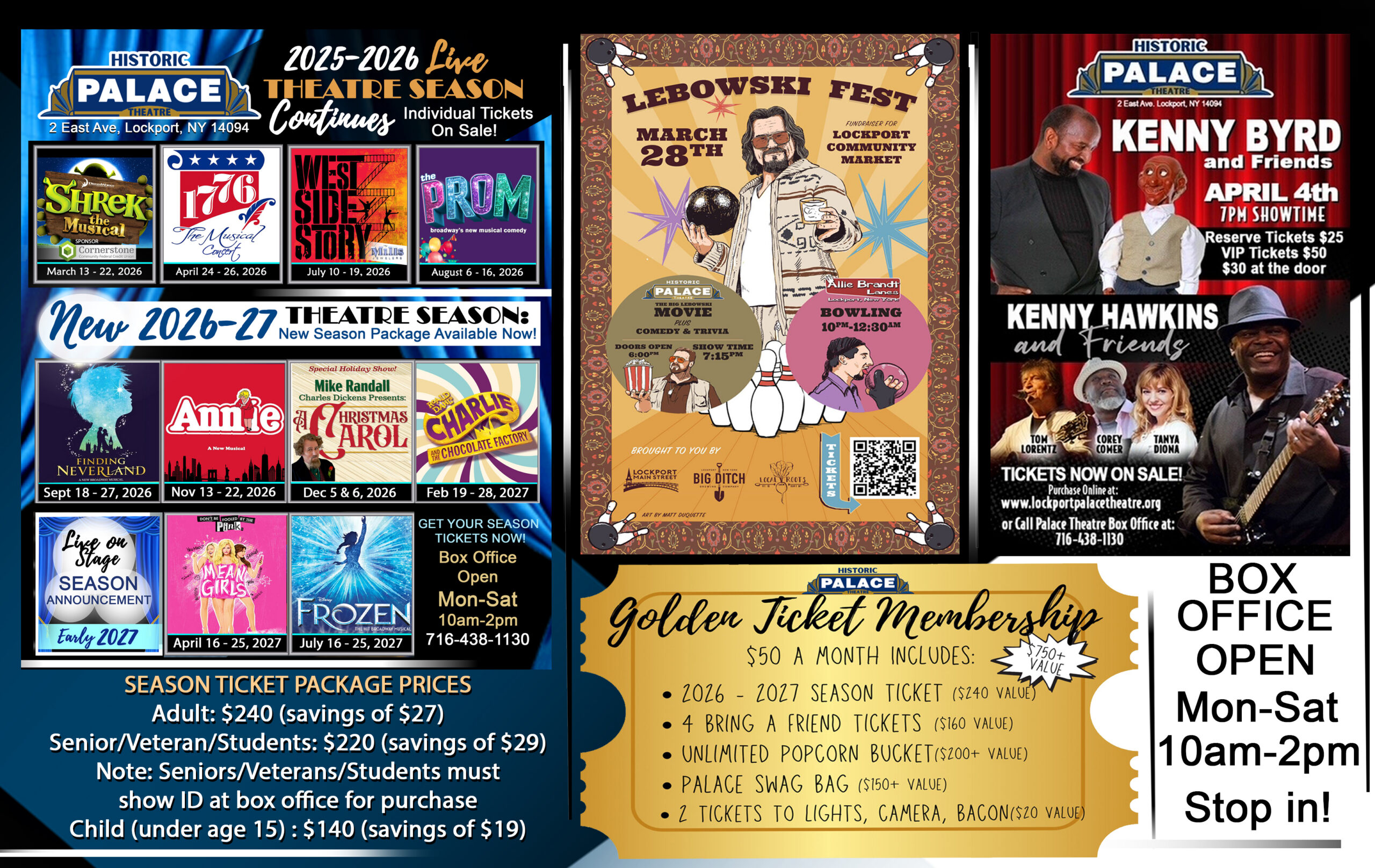 Welcome to the Historic Palace Theatre! Built in 1925, this historic gem has been a staple in the Lockport community for over 100 years. And after 4 years, a multi-million dollar restoration project, your Palace is shining brighter than ever!