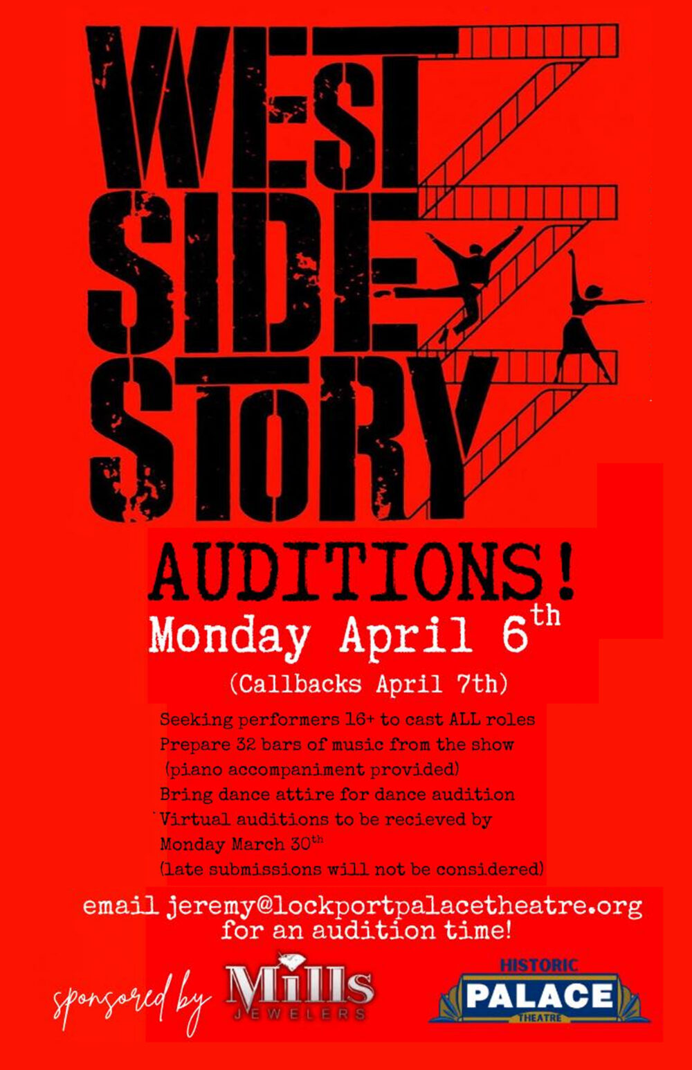 Schedule an audition: jeremy@lockportpalaceteatre.org