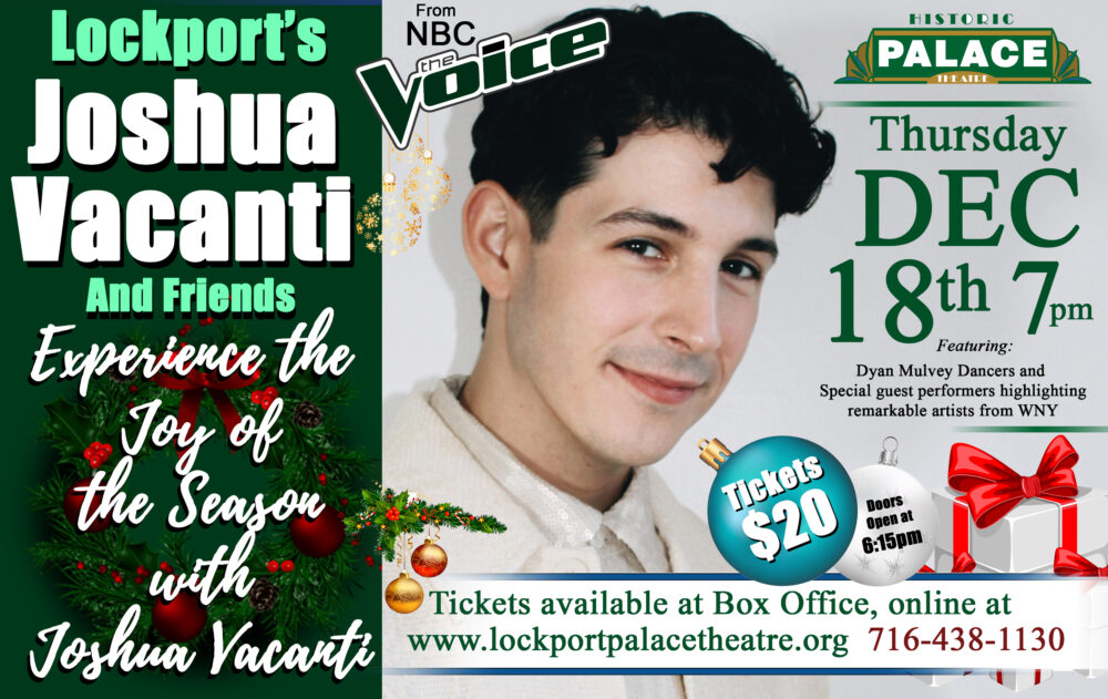 Join Joshua, Lockport Native and standout from NBC’s The Voice season 21, to celebrate the most magical time of the year with the 3rd Annual Hometown Holiday Variety Concert at The Palace Theatre.